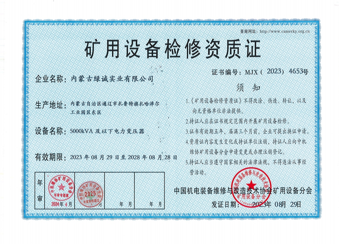 2018年我公司通過中國機電裝備維修與改造技術(shù)協(xié)會礦用設(shè)備分會審核并取得了9項礦用設(shè)備檢修資質(zhì)證書。公司本著“誠信為本 質(zhì)量為先 全心全意為客戶 ”的服務(wù)理念,圓滿完成各個廠礦的機械維修及配套服務(wù),期待與您共同合作。